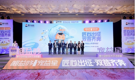 2024年4月1日,惠中動保“匠心出征 雙苗齊奔,貓三聯喵益哆&狂犬苗寵益星新品發布會”在成都成功舉辦。