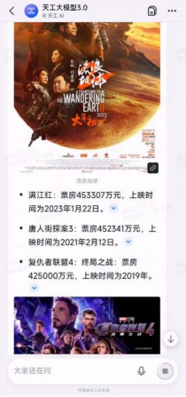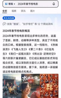 (Query:2024年春節檔電影;“天工3.0”理解并追問用戶需求)