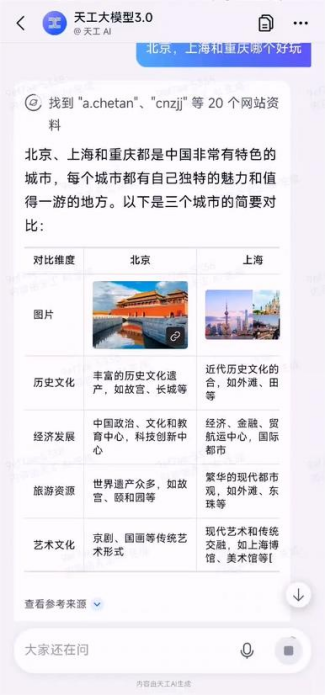 同時,“天工3.0”能夠通過強大的語義理解能力將用戶任務拆解成細分環節,實時判斷是否需要聯網或調用工具,進行單輪或多輪的聯網搜索、工具調用,完成包括多輪搜索、熱點信息分析、圖片生成等復雜用戶需求。