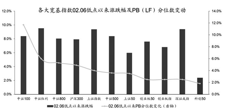 其次,今年來以各類龍頭公司為代表的寬基指數,都先后有不同程度的估值修復。在5月底至今科創50指數反彈后,各大寬基指數自2024年2月低點后的估值擴張幅度,科創50仍是估值分位數修復幅度最小的指數,這與其自2024年2月漲幅小相符,與之對應的是,今年大盤藍籌股、紅利指數估值修復程度好,中證100、中證紅利、滬深300均較2024年低點估值分位數修復5%以上,成長風格指數估值修復程度居后。