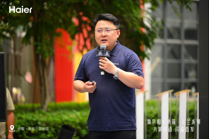 海爾南京制冷產(chǎn)業(yè)負(fù)責(zé)人王文強(qiáng)現(xiàn)場揭秘米蘭冰箱黑科技,從保鮮科技、家居融合、時(shí)尚審美多方面呈現(xiàn)產(chǎn)品價(jià)值,同時(shí)結(jié)合國家號召政策聯(lián)合區(qū)域經(jīng)銷商予以米蘭新品特別感恩補(bǔ)貼價(jià),服務(wù)市場為用戶讓利。