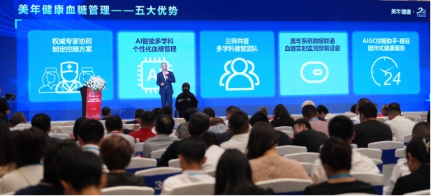 戰略簽約儀式結束后,美年健康集團副總裁郭璋在發布會現場進行了主旨演講,向與會嘉賓詳細介紹了美年健康集團最新的AI智能——“血糖管理創新產品”。