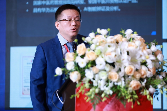 (美年健康集團副總裁郭璋介紹AI智能“血糖管理創新產品”)