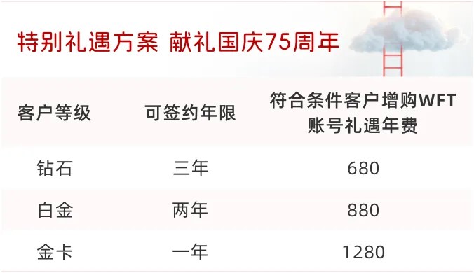 根據企業客戶采購情況不同,符合條件的客戶可分別享受鉆石、白金、金卡三個會員禮遇等級,即標準價采購之外增加Wind終端,每個終端分別只需支付680元、880元、1280元禮遇服務費即可開通使用。這不僅是我們對您信賴和支持的崇高敬意,更能切實助力企業客戶降本增效,通過提供更高性價比的服務,幫助您在激烈競爭中實現更穩健的增長。