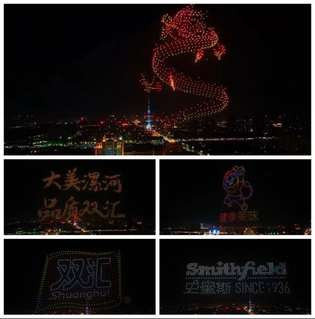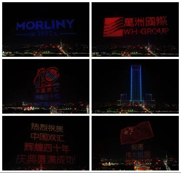 9月25日晚,中國雙匯輝煌40年慶典系列活動歡迎晚宴在漯河迎賓館舉行,為歡迎參加活動的中外嘉賓,企業精心準備了無人機表演。雙匯發展董事長萬宏偉出席晚宴并致辭。