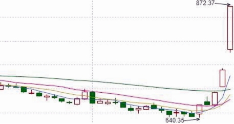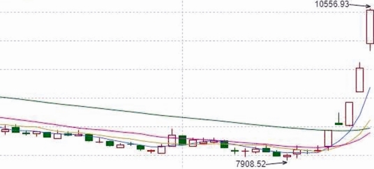 最近5個交易日,剔除剛剛上市的新股外,兩市累計漲幅超過70%的個股有17只,分別是銀之杰、指南針、海新能科、東方財富、匯金科技、同花順、新動力、品渥食品、贏時勝、特發服務、安碩信息、華致酒行、財富趨勢、思林杰、德方納米、漢嘉設計、愛美客,其中,銀之杰、指南針、海新能科股價已經翻番。