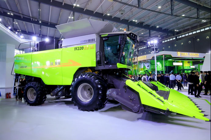 其中,中聯重科TF220是目前國內最大喂入量、最高工作效率、最大馬力、最大割幅、最大糧箱谷物聯合收獲機,喂入量達到了22kg/s,可廣泛適用于海內外的大田作業,作業效率可達60-110畝/小時。它可以收割玉米、大豆、小麥等多達20余種作物,實現一機多用,采用的混流脫粒清選系統,能夠在滿足22kg/s高效收獲作業的同時,把小麥收獲損失降低至0.6%以下,優于國家標準要求,大幅減損增收。