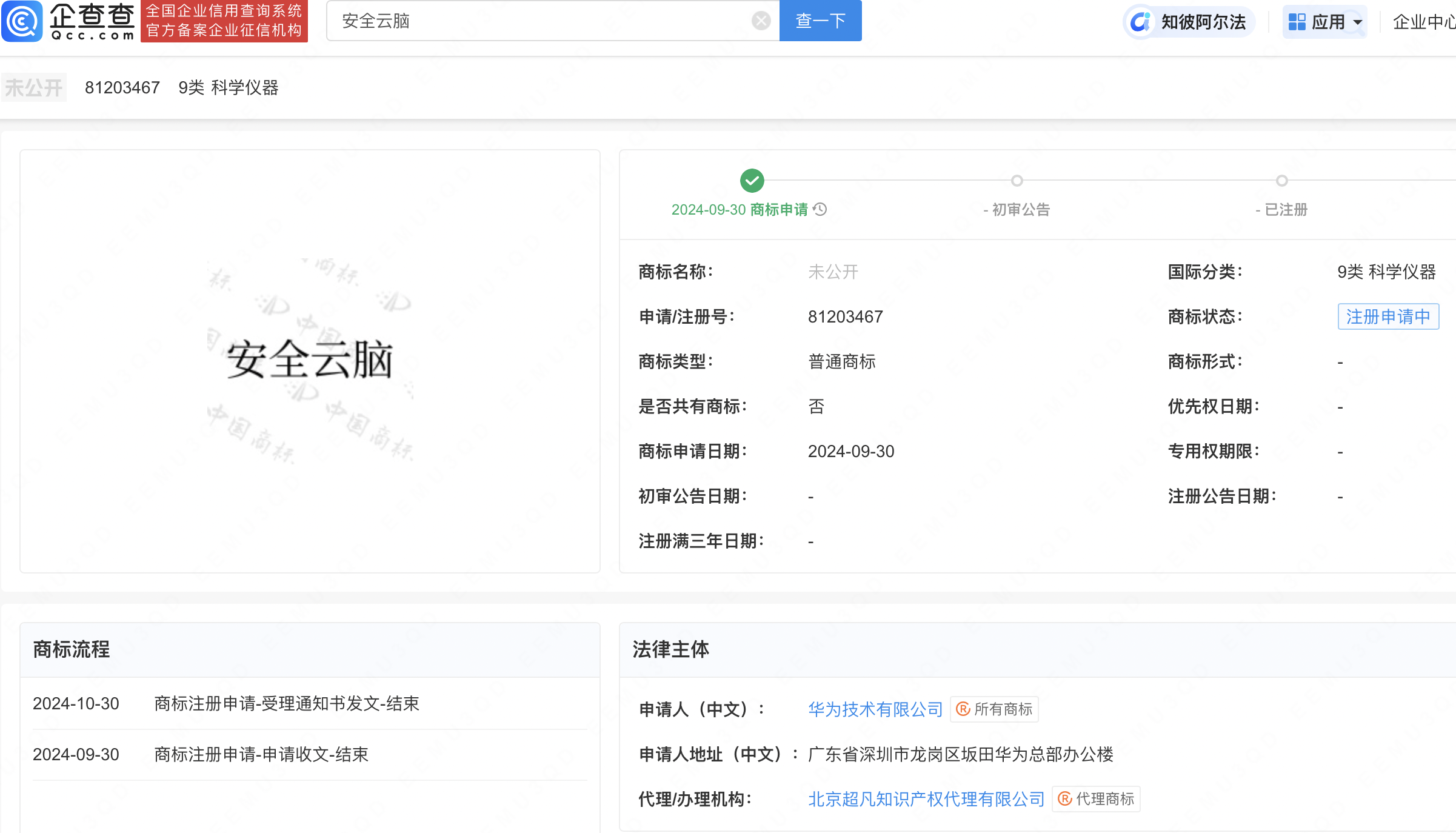 企查查APP顯示,近日,華為技術(shù)有限公司申請注冊“安全云腦”商標,國際分類為科學儀器,當前商標狀態(tài)為注冊申請中。 公開信息顯示,安全云腦是華為云原生的新一代安全運營中心,基于云原生安全,提供云上資產(chǎn)管理、安全態(tài)勢管理、安全信息和事件管理、安全編排與自動響應(yīng)等能力。