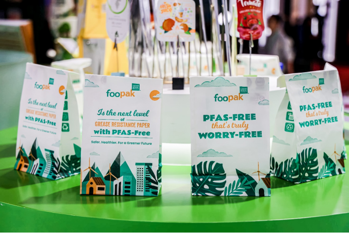 前幾屆的“爆款”展品——Foopak Bio Nature生物降解食品卡依托進博會的溢出效應(yīng)成功遠銷海外。今年APP又帶來了技術(shù)革新后的升級款——Foopak PFAS Free無氟防油食品卡,其優(yōu)勢在于保證紙張材料100%不含全氟和多氟烷基物質(zhì)的同時,依舊保持出色的耐油脂和耐熱性,為各類快餐、食品包裝筑牢了安全防線,讓消費者用得安心、放心。