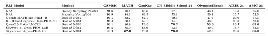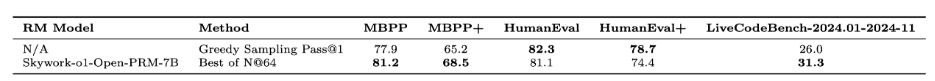 除Skywork-o1-Open-PRM外,其他開源PRM均未針對代碼類任務(wù)進行專門優(yōu)化,故不進行代碼任務(wù)的相關(guān)對比。