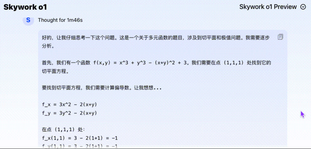 面對難度不小的最新考研數(shù)學(xué)題,Skywork o1 Preview盡管花費了一些時間,但還是一步步推理出了正確結(jié)果。