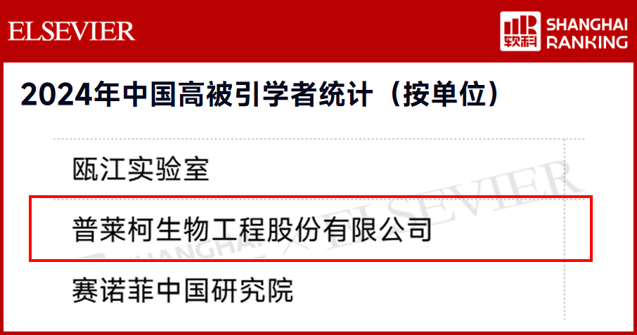 普萊柯入選愛思唯爾“中國高被引學(xué)者”榜單