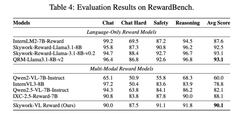 技術(shù)亮點一:推出多模態(tài)獎勵模型Skywork-VL Reward,全面開源