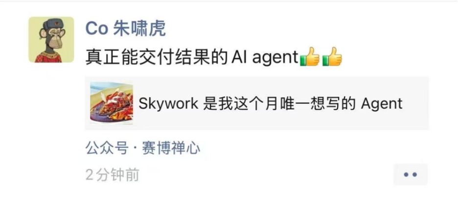 天工超級智能體在資本圈同樣也好評如潮,著名投資人朱嘯虎評價稱其為“真正能交付結(jié)果的AI agent”。