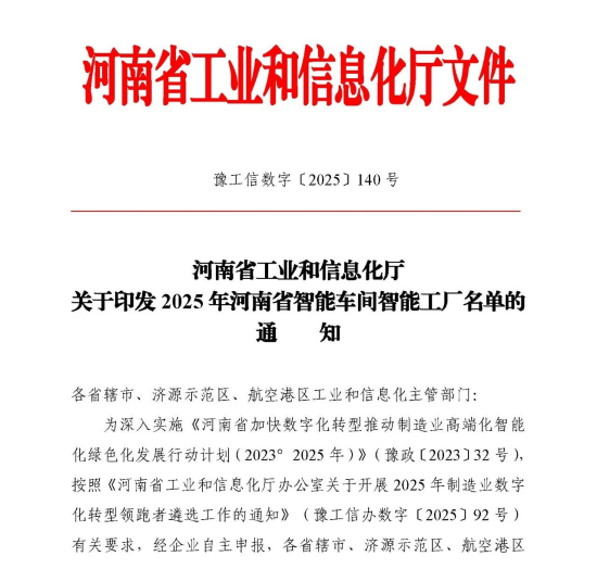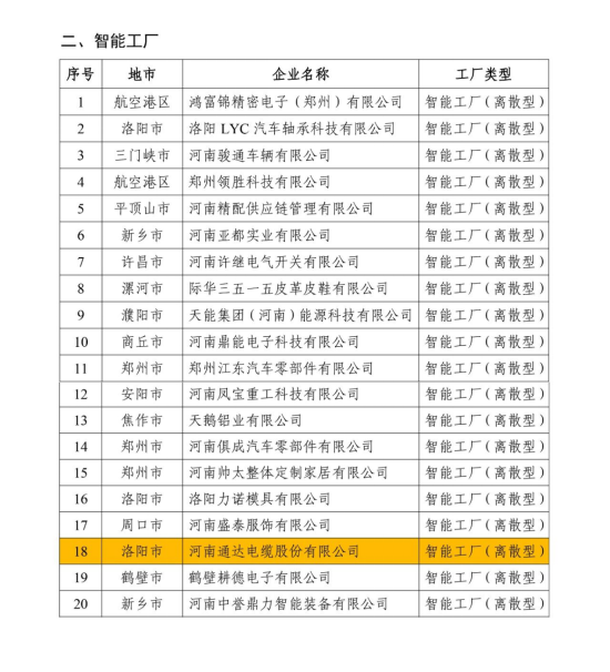 日前,河南省工信廳網(wǎng)站公示了2025年河南省智能車間智能工廠擬確定名單,河南通達(dá)電纜股份有限公司入選。