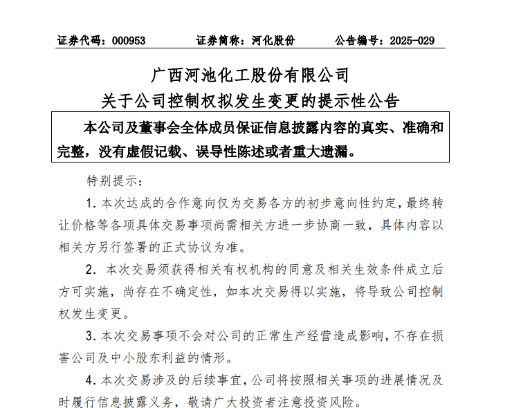 成立一個(gè)多月后擬受讓控制權(quán),河化股份新“正主”顯身?