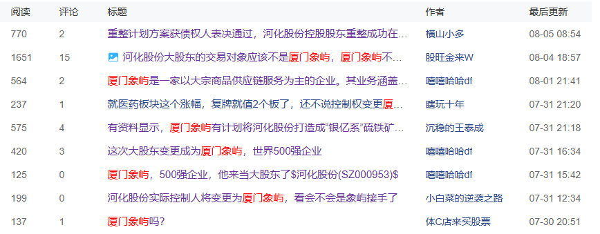 在河化股份控制權(quán)變更公告前,曾有投資者在股吧中表示:“廈門象嶼作為戰(zhàn)略投資者,未來可能通過股權(quán)劃轉(zhuǎn)或協(xié)議轉(zhuǎn)讓成為河化股份實(shí)際控制人。”