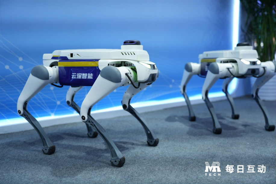 今年的數(shù)博會上,每日互動展臺還有另一個“人氣之星”,那就是兩位特別的講解員——云深A(yù)I機器狗。云深A(yù)I機器狗由每日互動與“杭州科技六小龍”之一的云深處聯(lián)合打造而成。它基于每日互動的數(shù)據(jù)智能優(yōu)勢,集成了大語言模型、語音交互、語音控制、圖像識別、自主導(dǎo)航等能力,擁有一顆靈活的大腦,能思考,會說話,滿足企業(yè)、文旅、教育、公安等客戶特定場景下的語音交互、智能問答、知識宣傳、展廳講解等需求。