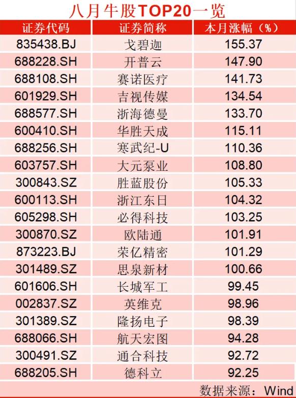 A股8月收官,牛股TOP20出爐!工業富聯,市值破萬億!