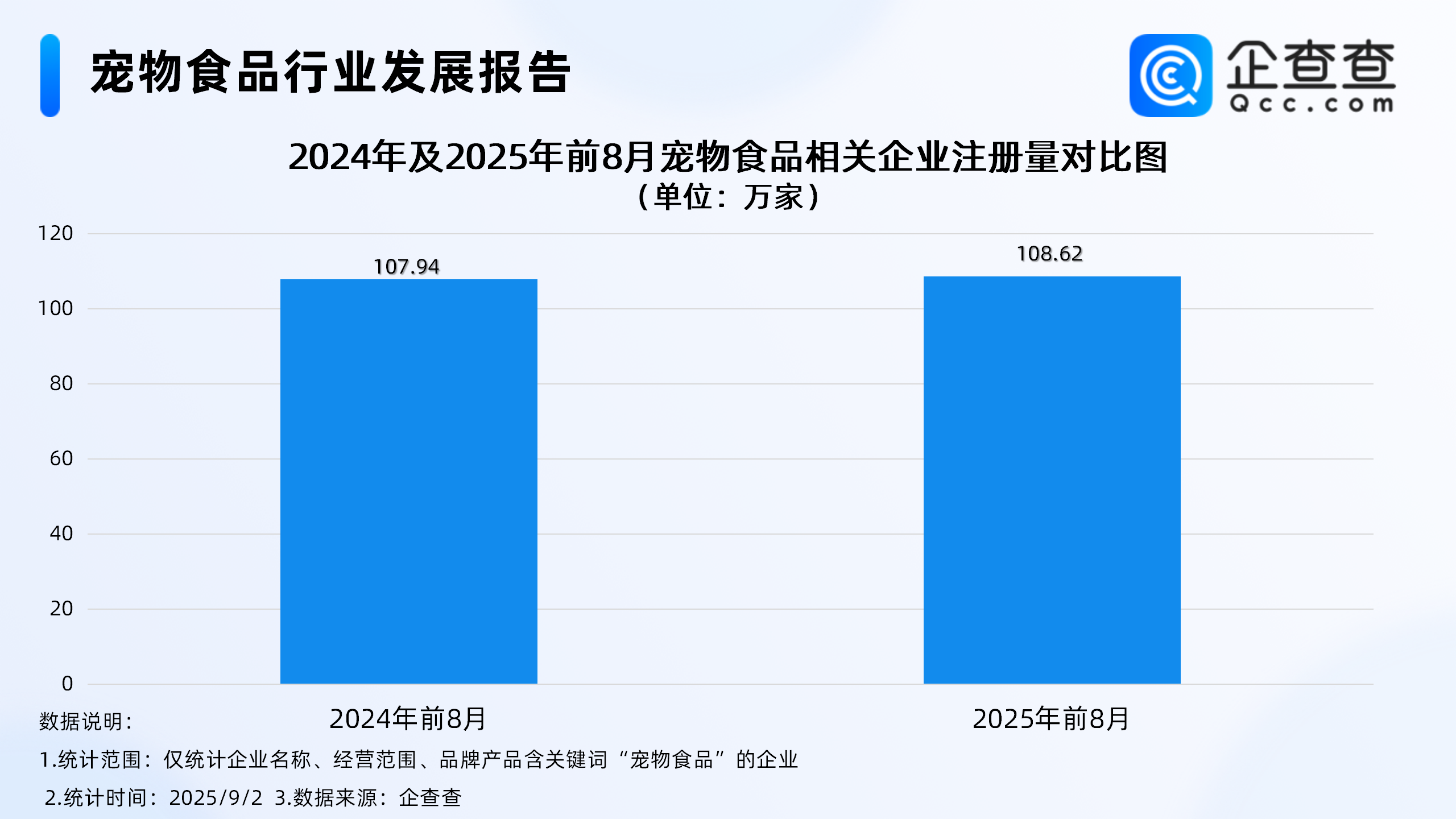 據(jù)證券時報,當前寵物食品已成為我國寵物經(jīng)濟中最大細分市場,2024年市場規(guī)模達1668億元,同比增長7.54%,預計2025年將突破1755億元。《2025年中國寵物行業(yè)白皮書》數(shù)據(jù)顯示,2024年,90后是養(yǎng)寵物的主力軍,占比41.2%。00后占比為25.6%,較2023年上升15.5個百分點。年輕消費群體,更關注寵物食品的營養(yǎng)配比、配料組成和功能性。 企查查數(shù)據(jù)顯示,截至9月初,國內寵物食品相關現(xiàn)存企業(yè)達454.6萬家,主要分布在華東地區(qū)、華南地區(qū)。從成立年限來看,近8成相關企業(yè)成立于近三年。注冊量方面,近十年相關企業(yè)年注冊量整體呈上升趨勢,2024年注冊量達163.54萬家,今年前八月注冊量達108.62萬家,同比略增。今年新注冊的寵物食品相關企業(yè)主要分布在二線城市。