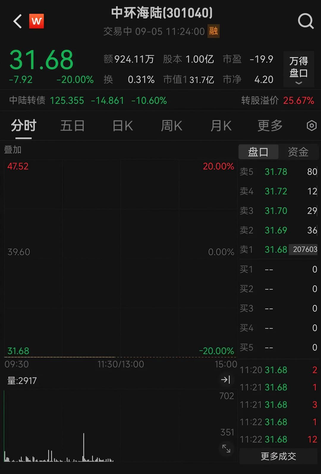 今日復(fù)牌的中環(huán)海陸(301040)開盤即“20CM”跌停,截至發(fā)稿時(shí),該股股價(jià)暫報(bào)31.68元/股。今年以來,中環(huán)海陸的股價(jià)一路“飆升”,從探底的10元左右漲至30多元,年內(nèi)區(qū)間漲幅超過150%。