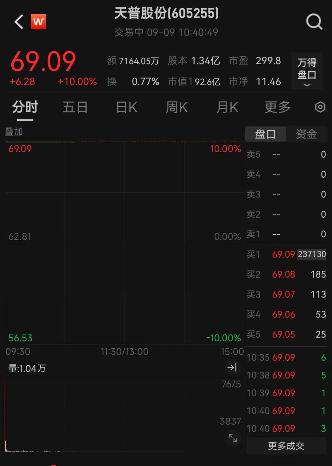 此前因連續(xù)“一字”漲停而主動(dòng)停牌核查的天普股份今日復(fù)牌,公司股價(jià)再獲“一字”漲停,強(qiáng)勢(shì)上演十連板,續(xù)創(chuàng)歷史新高,10個(gè)交易日的區(qū)間漲幅近160%。