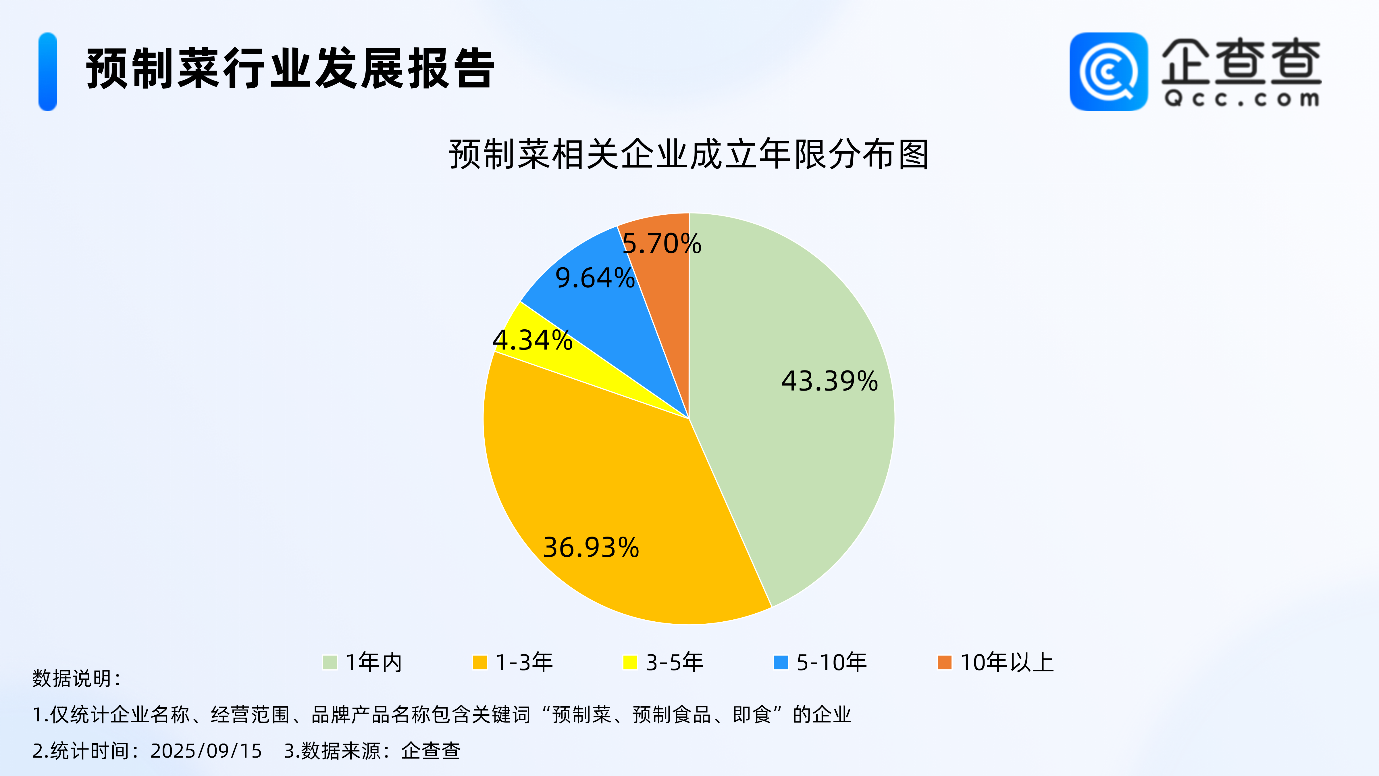 企查查數(shù)據(jù)顯示,從經(jīng)營時間來看,超八成預(yù)制菜相關(guān)企業(yè)成立于近三年,其中成立年限在1年內(nèi)的相關(guān)企業(yè)最多,占比43.39%。其次,成立年限在1-3年的相關(guān)企業(yè)占比36.93%。