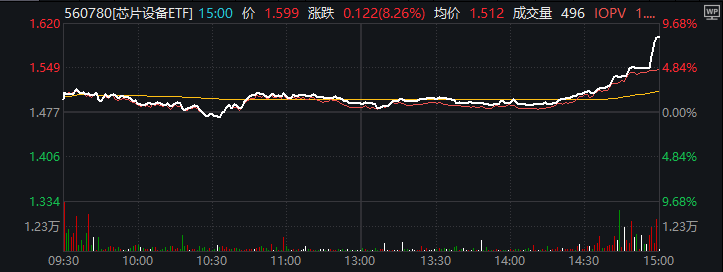 最后半小時資金集體出手“硬科技”,芯片設備ETF(560780)尾盤異動拉升,收漲7.72%,光刻機、存儲芯片、CPO概念迅速帶動指數回升。板塊方面,半導體設備、銀行、光刻機概念領漲,旅游酒店、房地產服務等板塊跌幅較大。