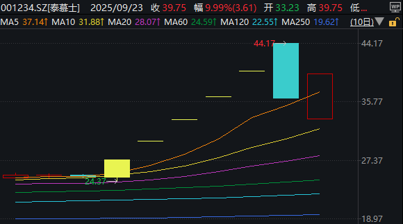 一度斬獲5連板漲停,又在昨日上演“天地板”的泰慕士(001234),今日早盤集合競價階段遭遇大量拋單被按住跌停,隨后以超過6%的跌幅大幅低開,但該股快速上揚穩步攀升,在開盤20分鐘內,以12.66%的換手率和4.33億元的成交金額強勢封住漲停,并維持至收盤。