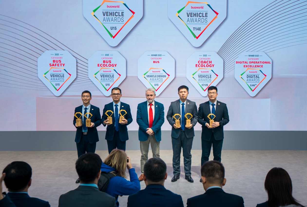 在這場盛會上,中國客車品牌宇通以“Think Eco,Move Green”為主題,攜高端純電動車型及多項前沿技術亮相,并一舉斬獲“年度最佳客車大獎”“年度最佳巴士大獎”等七項Busworld大獎,創下迄今中國客車品牌參評Busworld獲獎數量的最高紀錄。其中,年度最佳客車大獎和年度最佳巴士大獎,均為中國客車品牌在Busworld首次獲得,再次為中國制造贏得榮光。
