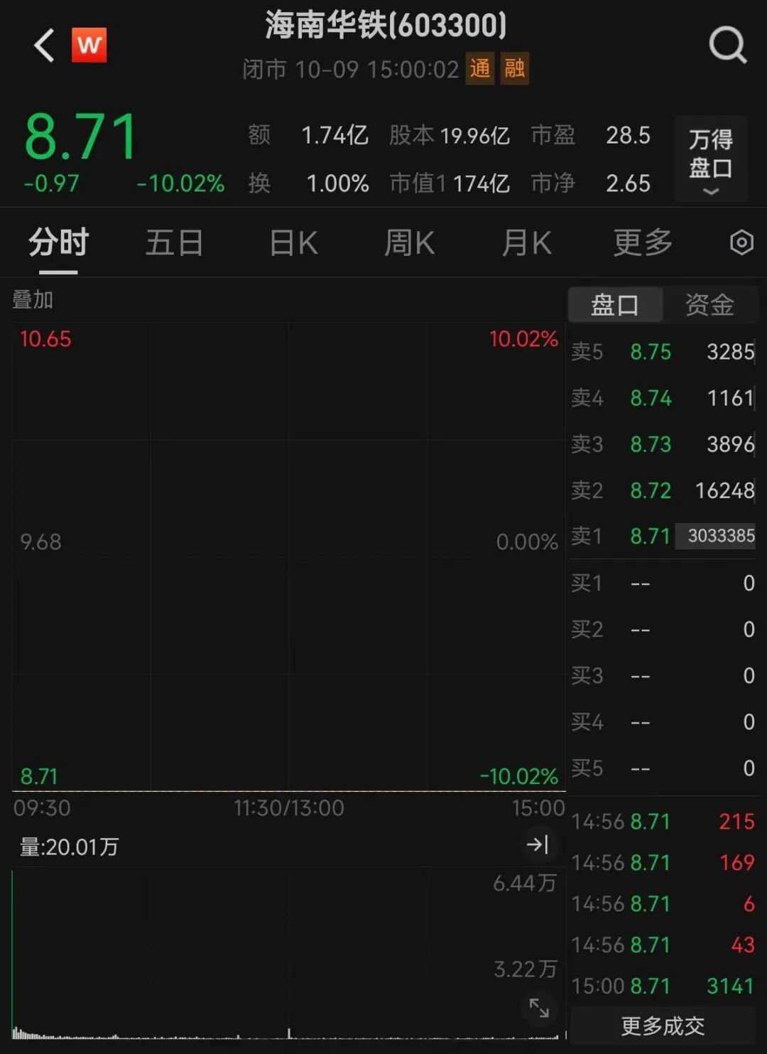 戰戰兢兢熬過了長假,10月9日開盤,海南華鐵股價“一字”跌停,截至收盤,賣一位置仍有26.42億元賣單正在排隊。