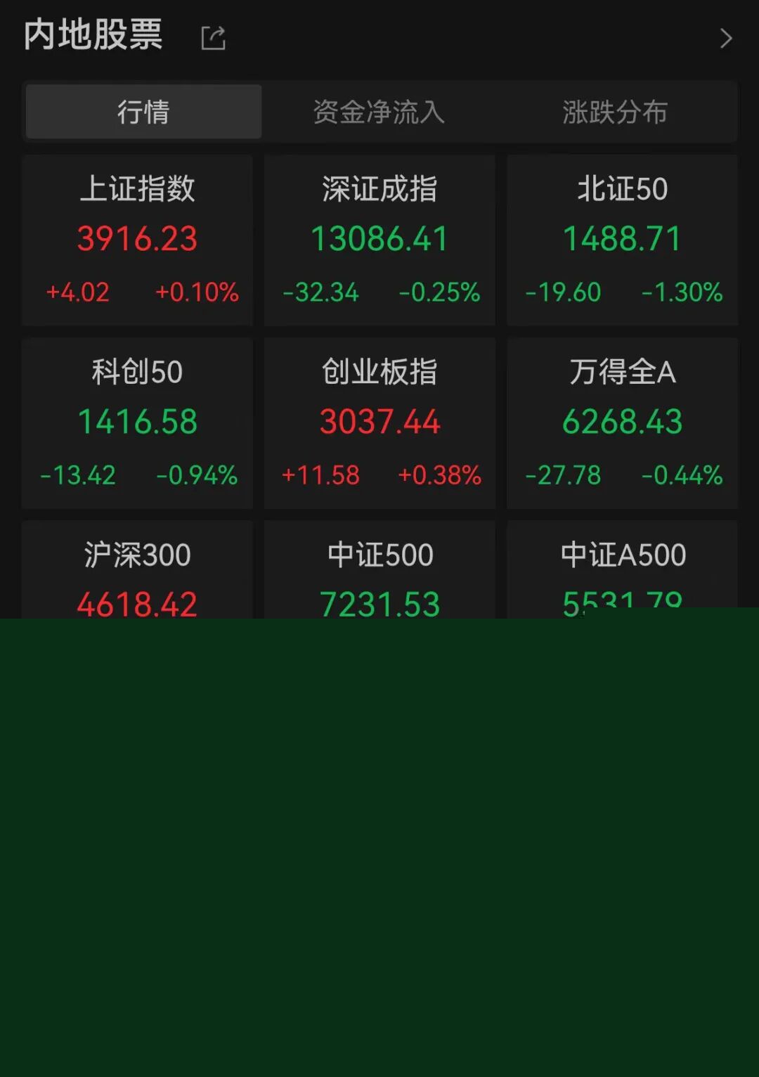 16日,A股三大指數表現分化,全市場個股漲跌中位數為-1.26%。滬深兩市成交額回落至2萬億元以下,較昨日縮量1417億元。