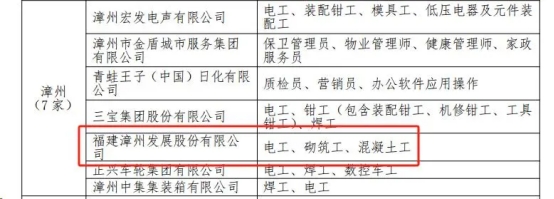 漳州發展整合權屬企業漳州人才發展集團有限公司和福建漳發建設有限公司優勢資源,以漳州人才發展集團有限公司為人才服務支撐,以福建漳發建設有限公司為實體產業載體,聚焦電工、砌筑工、混凝土工三大緊缺工種,構建“產訓融合”的高技能人才培養生態體系,為區域產業發展提供高質量技能人才支撐。
