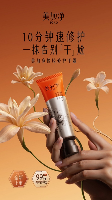 美加凈第三季度以面護級科學(xué)功效及愉悅的香氛體驗全新推出蜂膠香氛手霜,精選99%高純度秦嶺蜂膠,主打10分鐘快速修護,8秒瞬吸收,搭配中式三段調(diào)香。上市即登抖音護手霜禮盒超值爆款榜與人氣榜榜首、天貓護手霜新品榜熱銷榜單TOP3。