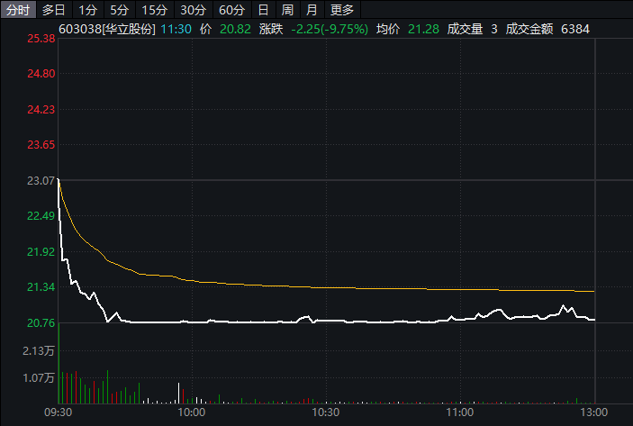 在拋出擬“跨界”收購(gòu)的意向性協(xié)議后,主營(yíng)裝飾復(fù)合材料的華立股份(603038)卻未能延續(xù)前一日股價(jià)漲停的強(qiáng)勢(shì)走勢(shì),其今日低開后快速下挫,在跌停價(jià)反復(fù)“掙扎”。截至午間收盤該股股價(jià)報(bào)20.82元,下跌9.75%。