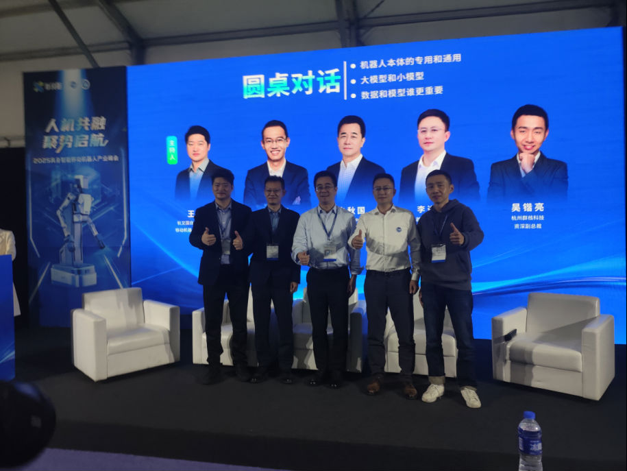 論壇最后,杭叉國自智能高級副總裁王文斐作為主持人,陶煜昆、朱秋國、李進科、吳鍇亮作為嘉賓舉行圓桌對話,圍繞“具身智能的產業化路徑”這一話題做了進一步的分享與探討,凝聚了重要共識,并對行業未來表示期許。