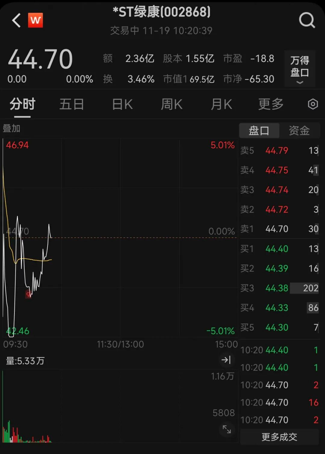 開盤跳水!*ST綠康“九連板”后上演“天地板”
