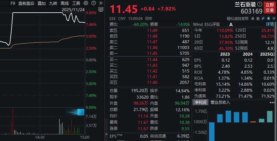 1分鐘漲停!蘭石重裝尾盤“跳水”