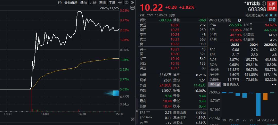 27156戶股東心跳“過山車”!*ST沐邦午后上演“地天板”