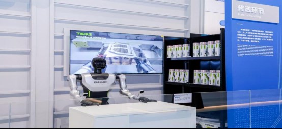 ▲中聯重科人形機器人與智慧倉儲物流整體解決方案展示