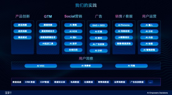 如在銷售場景,智能體對銷售線索的個性化培育和精準轉化,可實現“一人一策”;在Social內容營銷領域,能夠從策略、內容、達人到投流、歸因,全鏈路由AI賦能,使營銷效果可量化、可優化;CRM/用戶運營領域能結合營銷自動化平臺(MA)支持AI個性化內容生成和智能旅程;以及在客戶之聲(VOC)與洞察、消費者調研、AI廣告、AI搜索與優質語料優化等場景都推出了創新的AI智能體應用解決方案。
