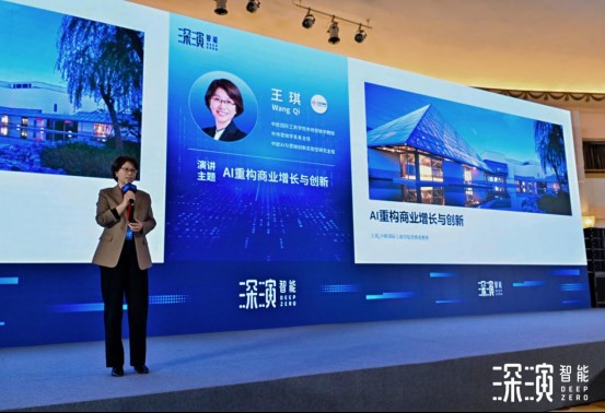 除產品的發布和演示外,本次會議上中歐商學院市場營銷學教授、市場營銷學系主任、中歐AI與營銷實驗室研究主任王琪發表了題為“AI重構商業路徑”的演講。她分享了來自企業調研的“3×3戰略框架”,系統闡述了AI對企業的影響,并詳細介紹了AI在市場洞察、產品創新、內容管理、銷售管理等價值鏈環節帶來的新范式。