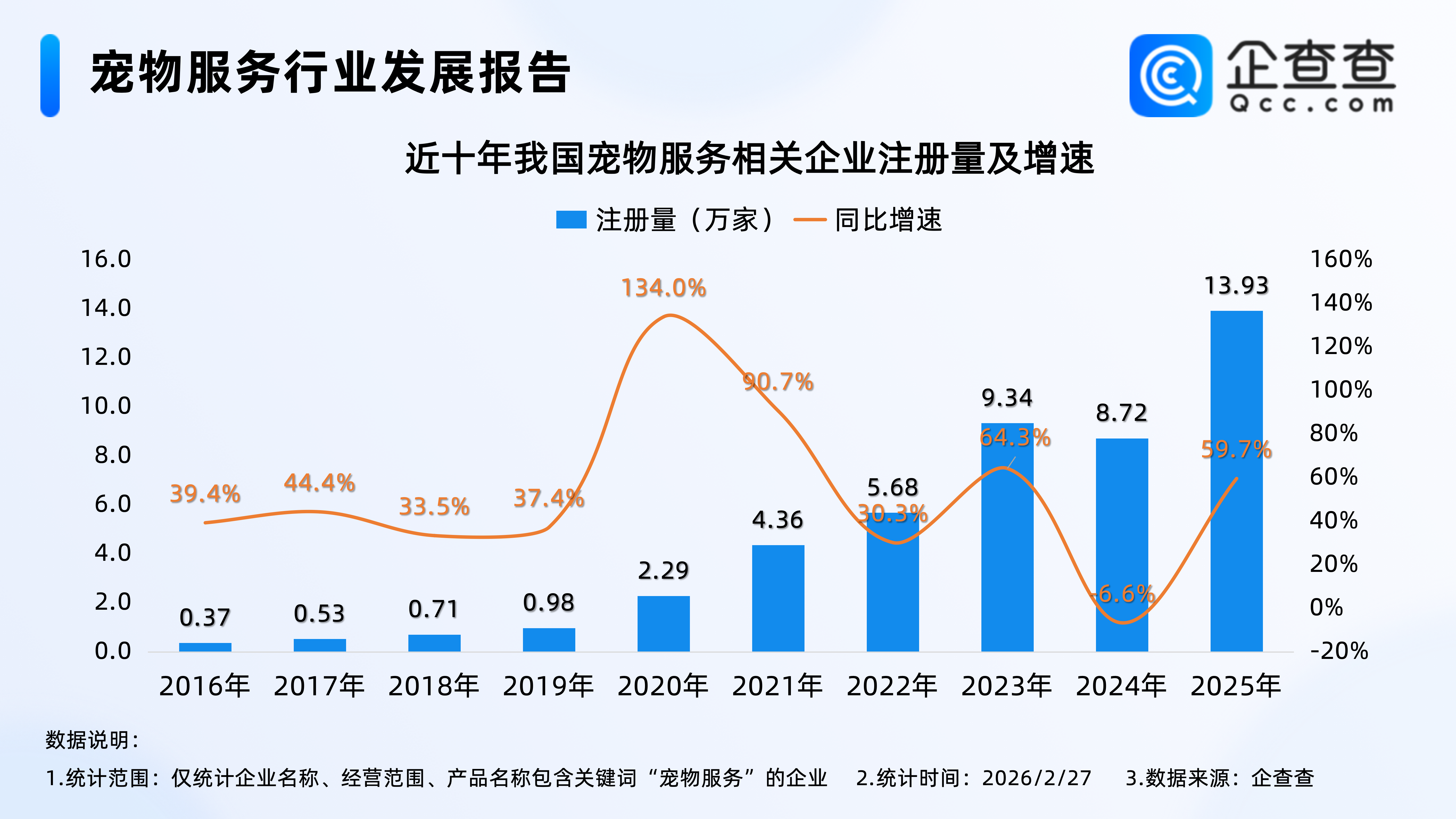 1.從注冊量來看:2025年注冊近14萬家寵物服務相關企業