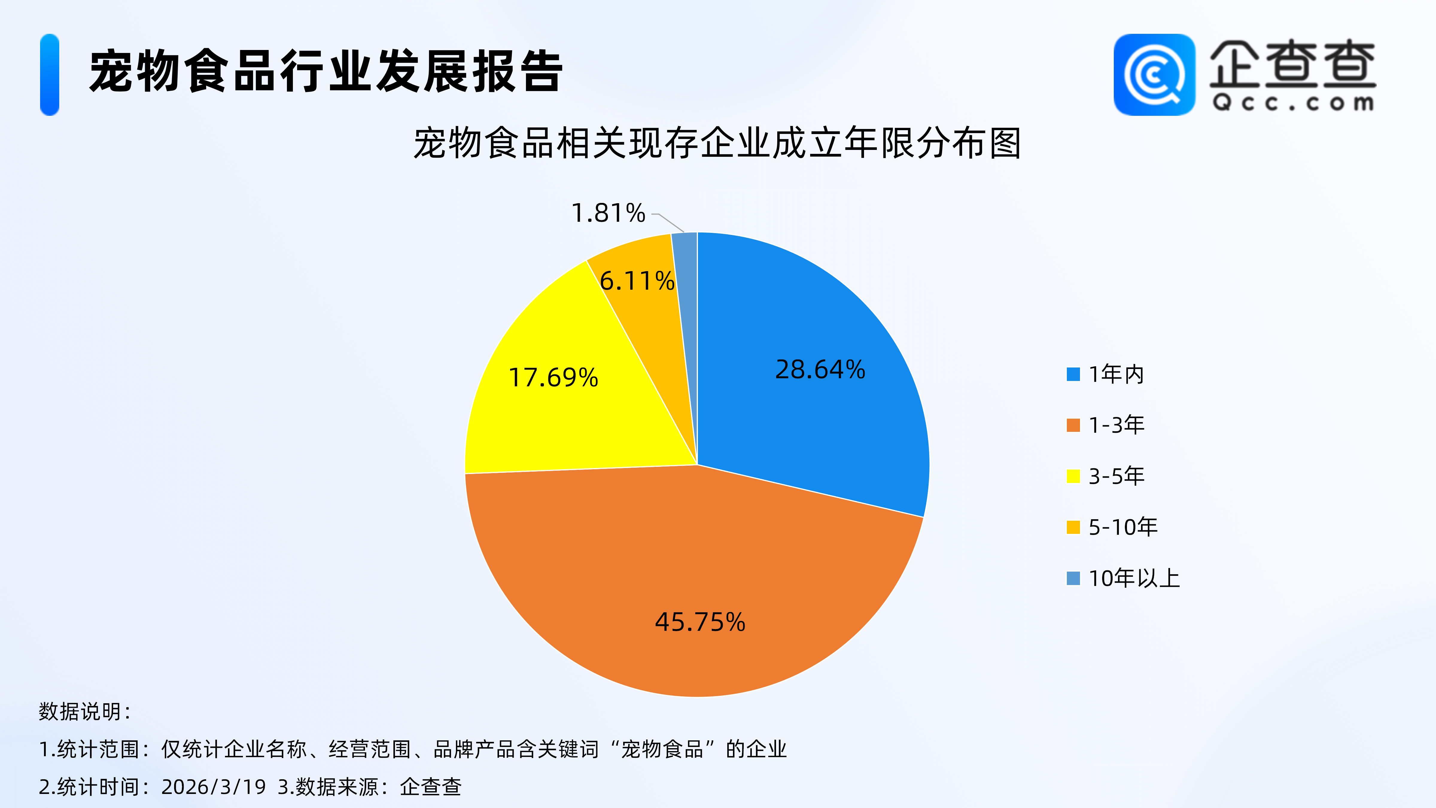 企查查數據顯示,行業增長動能強勁,新主體持續涌入。數據顯示,超7成寵物食品相關企業成立于3年內,其中成立年限在1-3年的相關企業占比45.75%,成立1年內的相關企業占比28.64%。這一數據充分反映出寵物經濟持續爆發,賽道吸引力強勁,大量創業者與資本加速布局,行業處于高速擴容期,同時也意味著市場競爭日趨激烈,品牌化、差異化、技術壁壘將成為突圍關鍵。