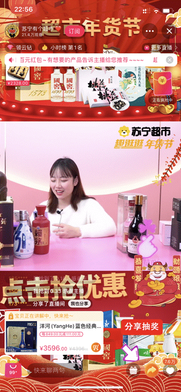 春節將至,街頭巷尾的年味越來越濃。盡管近期新冠肺炎疫情呈現多點散發狀態,雖然聚會場景變少,但小型家宴、節日送禮需求仍在。此背景下,“網上年貨節”成為當下最流行。天貓、京東、蘇寧等各大電商平臺在年貨節營銷下,白酒銷售也呈現火爆之勢,其中尤以飛天茅臺、“夢之藍M6+”等高端白酒,消費者最為青睞。在天貓、蘇寧等平臺直播間里,“夢之藍M6+”被“搶斷貨”成為常態。