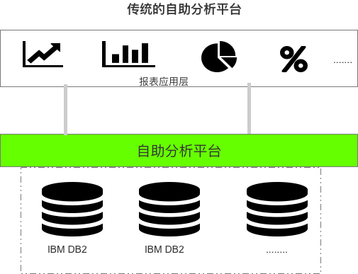 但隨著自助分析平臺使用率逐步提高、數據量日益增大,尤其多人同時對數據量較大的業務主題進行查詢分析時,平臺出現較為嚴重的等待現象,影響可用性。此外,單節點DB2數據庫的數據處理效率低下,還降低了科技人員開發效率,直接影響數據服務能力。