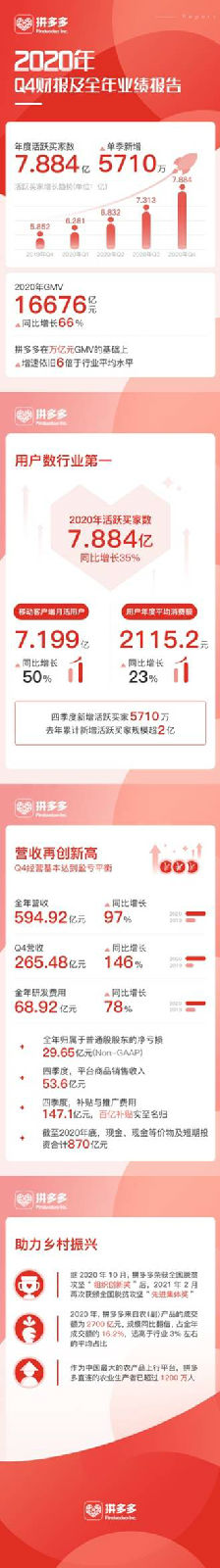 北京時間3月17日,拼多多發布2020年第四季度及全年財報: