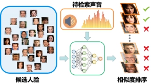 圖說:AI模型通過比較聲音和人臉圖片在共享空間的距離,推斷出相似度,按相似度將候選人臉排序。