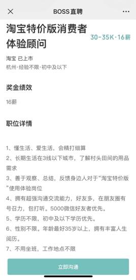 淘寶特價(jià)版50萬年薪招募三線以下城市英才:不看學(xué)歷,看微信好友數(shù)