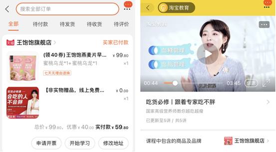 淘寶教育運營總監(jiān)葉挺介紹,淘寶里的知識供給和實物商品正在互相增益。例如購買一個瑜珈墊,隱藏需求是學(xué)習(xí)瑜伽課;買一包麥片,消費者其實是想追求健康飲食方式。